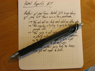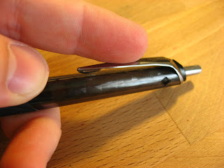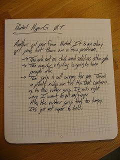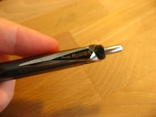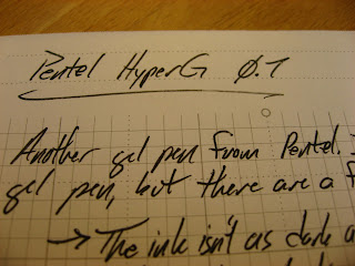 I'm also not a huge fan of the way it writes. The pen I'll be reviewing next appears to use the same ink cartridge, so perhaps this one is just a dud, but this one doesn't write all that well. It's not terrible, but it's just not putting down enough ink for my tastes. Still better than a ball point, but not as good as a gel ought to be.
