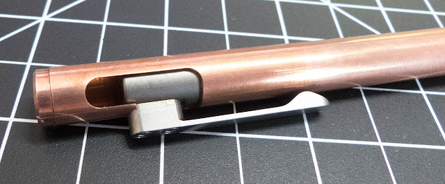 Now, we've got a bolt-action-style gel pen. This TiScribe Bolt is a solid copper pen (just like the others), though it's also available in brass and titanium. Thanks for sending this pen out, Kelvin!