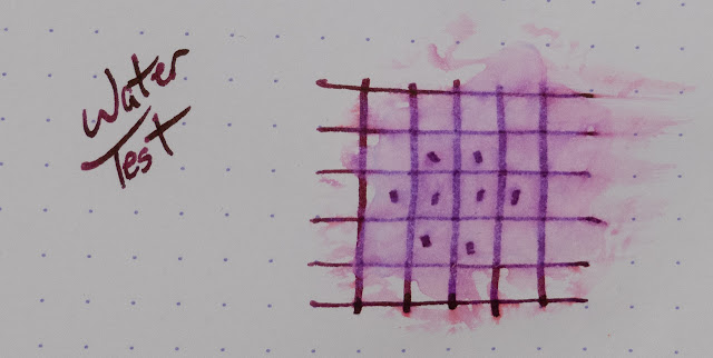 Cool lookin' smear left over when you put water on this ink, eh? It turns purple, but it's totally readable. I think this might make for some really near art-uses as well.