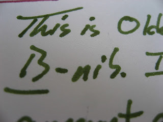 I don't have a fine nib, but I think I have a pretty nice set of nibs to test with, now. Olde Emerald doesn't change a whole lot from nib-to-nib, but you can see a little bit of difference. I like the broad stub the best, but Mike Masuyama is an excellent nib-grinder, and he grinds all of the custom nibs for Franklin-Christoph.