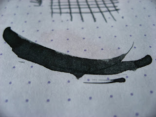 I've been into grey inks lately, and I have a few of these reviews stacked up, just waiting to be written. This De Atramentis ink looks way better in these pictures than it does in real life. The Rhodia paper really helped the ink pool and retain its color.